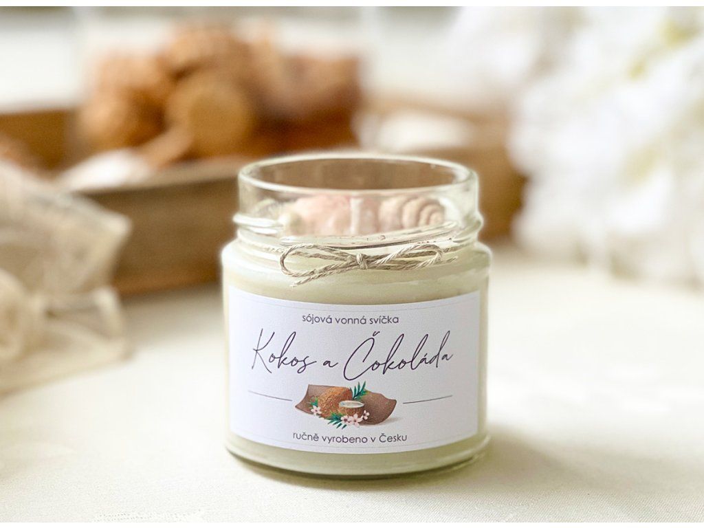 | Text na štítku svíčky: | Kokos a čokoláda |