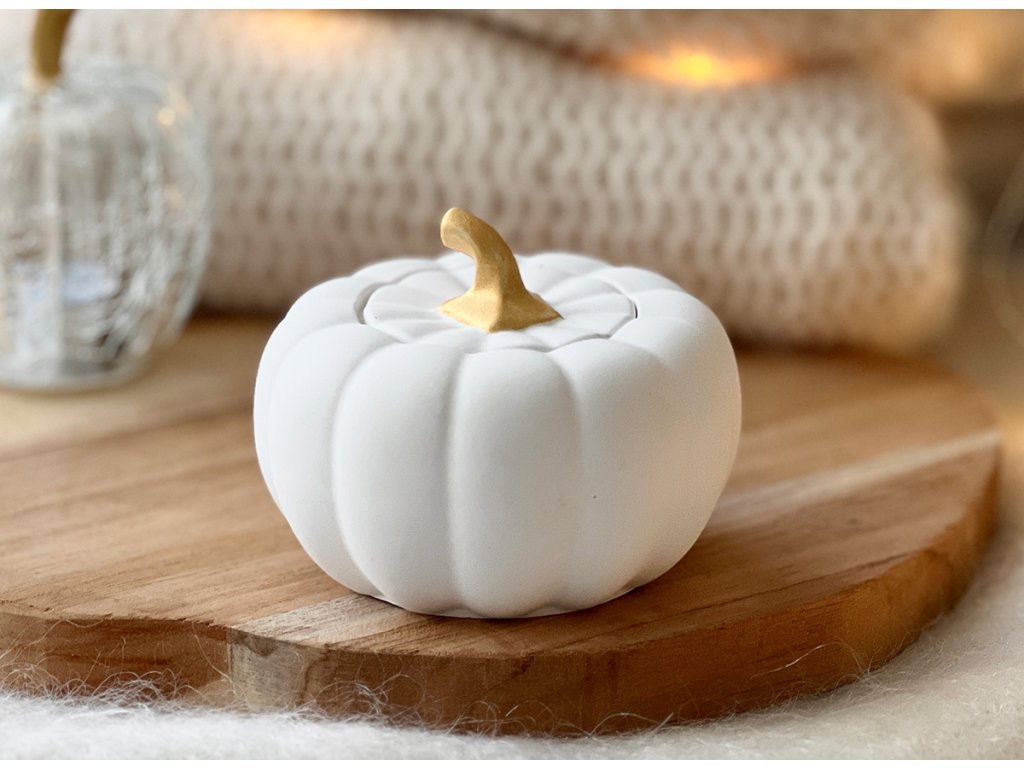 Sójová podzimní svíčka v bílé dýni se zlatou stopkou🎃