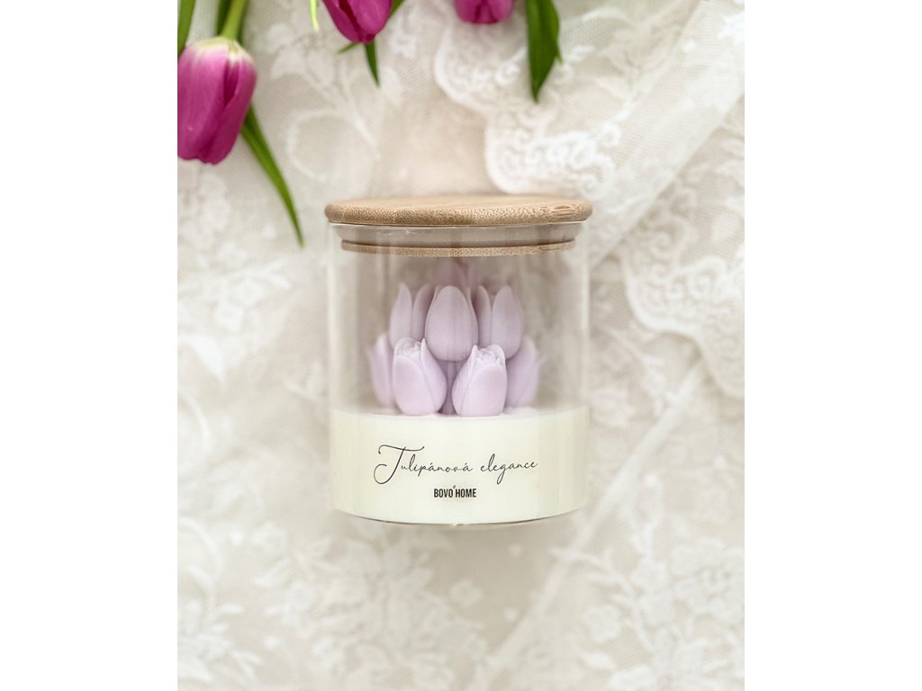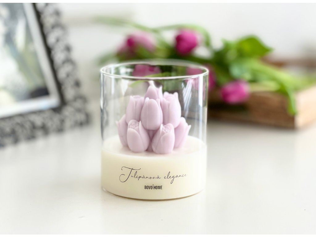 Svíčka s fialovými tulipány je krásný dárek pro ženy, které si chtějí dopřát chvíle odpočinku, klidu a jemné elegance. Udělejte radost sobě nebo někomu blízkému a nechte se unést něžnou atmosférou, kterou tato výjimečná svíčka přináší.