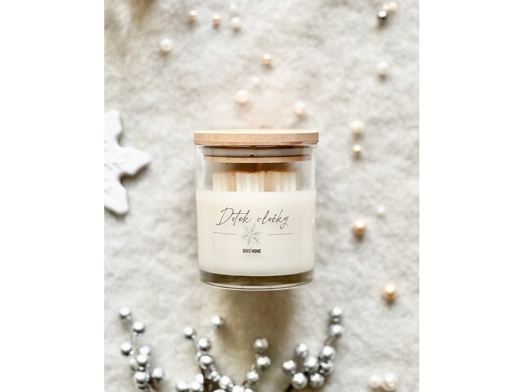 | Text na štítku svíčky: | Dotek vločky |