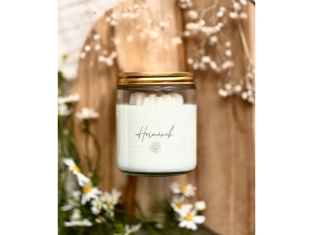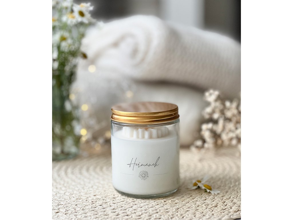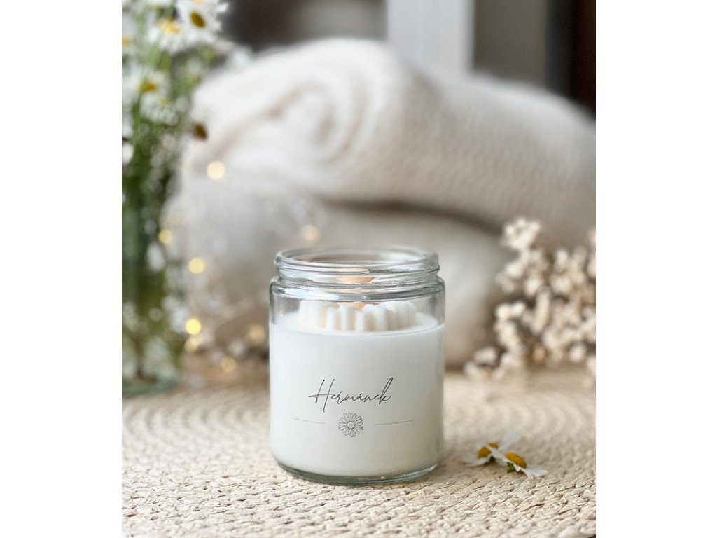 - Svíčku s příjemnou jemnou, bylinnou vůní Heřmánku.