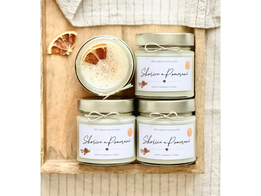 Sójová vonná svíčka vůně Skořice a Pomeranč